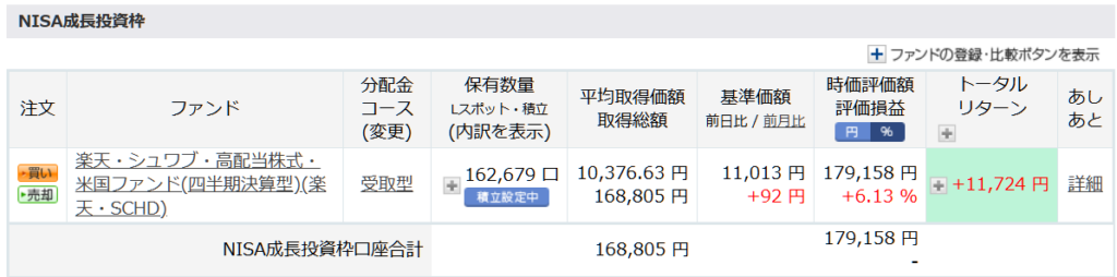 - NISA・楽天SCHD:3,000円 将来的に配当が勝手に増えてくれたら嬉しいな、という期待を込めた枠です。