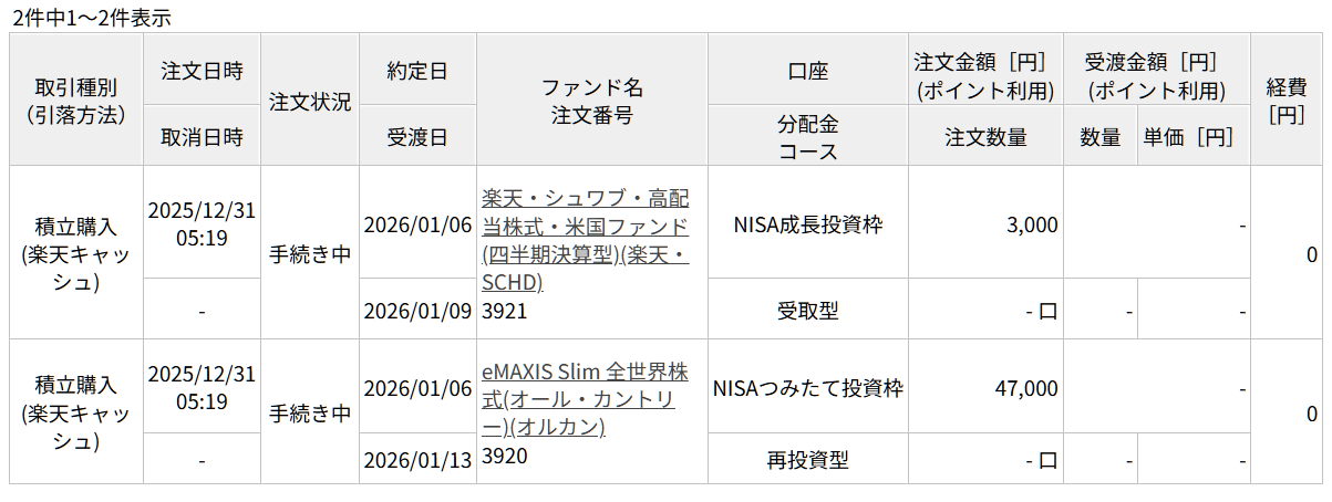 2026年最初の積立投資が、無事に実行されました。