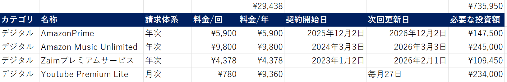 僕は半年に一度、スプレッドシートを使って徹底的な「サブスク見直し」を行っています。