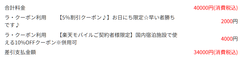 | ③ トラベル割引 (限定) | ▲5,197円 | モバイル契約者限定クーポン適用額 |